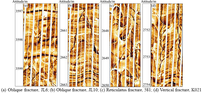 Figure 6 FMI logging characteristics of fracture with different attitudes in volcanic rocks: