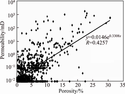 Figure 8 Relationship between reservoir porosity and permeability in volcanic reservoir