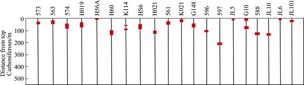 Figure 11 Relationship between oil gas show and distance to top Carboniferous