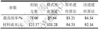 (1) 改进遗传算法和简单遗传算法优化效果均优于模式搜索算法,原因是在优化过程中,模式搜索算法局限于局部最优解,而遗传算法具有优秀的全局优化能力,得到的是全局最优解。