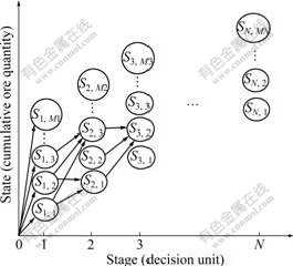 Fig.1 Dynamic propramming network for cutoff grade optimization