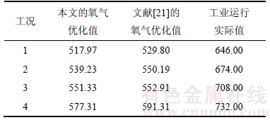表5 基于改进灰狼算法的氧气添加量优化结果(10次优化结果的平均值)