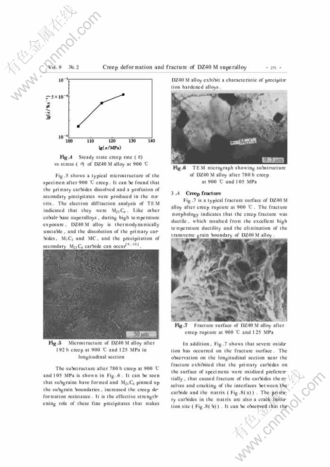 CREEP DEFORMATION AND FRACTURE OF DZ40M DIRECTIONALLY SOLIDIFIED COBALT-BASE SUPERALLOY AT HIGH TEMPERATURE