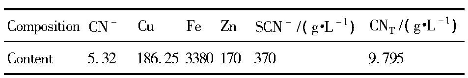 表1 氰化废水的主要成分Table 1 Main ingredients of cyanide wastewater(mg·L-1)