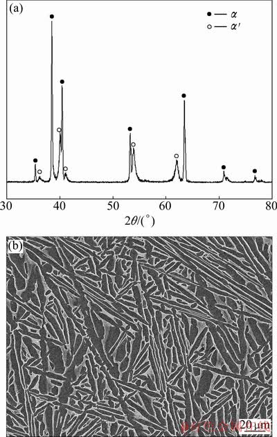 Fig. 2 XRD pattern (a) and SEM image (b) of TC11 alloy forged by high temperature homogenizing treatment