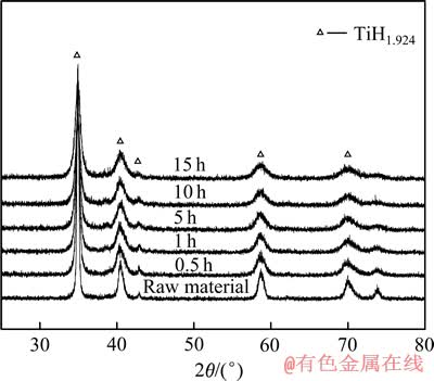 Fig. 3 XRD patterns of TiH2 powder at mass ratio of ball to powder being 20:1 after milling for different times