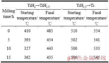 Table 3 DSC dehydrogenation characteristic temperatures of TiH2 powder at different milling times