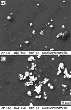 Fig.3 SEM images of AZ81+RE alloys after solid solution and aging treatment: (a) AZ81+1%RE; (b) AZ81+3%RE