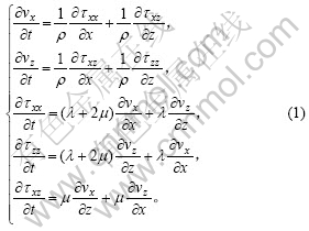 在二维均匀各向同性弹性介质中,一阶速度-应力标量弹性波动方程为[7]: