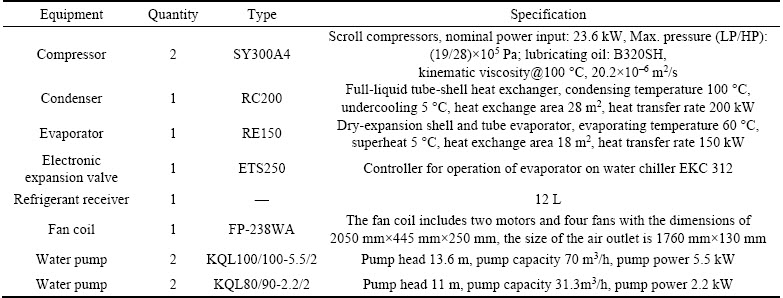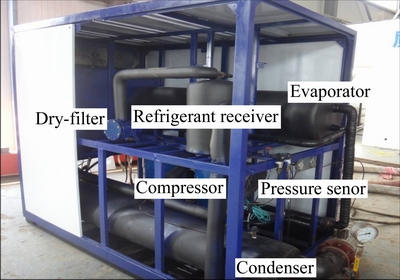 A HTHP system was built to study its performance on a national heat pump test bench, which is located in Dongying, Shandong province, China. Figures 1 and 2 show the flowchart and the appearance of the experimental HTHP system. There are two loops in the experimental HTHP system (refrigerant loop and water loop).