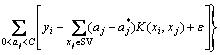 where Nnsv is the number of support vectors; ai and are Lagrange multipliers; k(xi, xj)=f(xi)·f(xj) is a kernel function; ε is a free parameter which serves as a threshold and all predictions must be within an ε range of the true predictions.