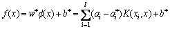 where w and b are the weight vector and the bias, respectively; f is a mapping function which maps the original input data into a higher-dimensional space.