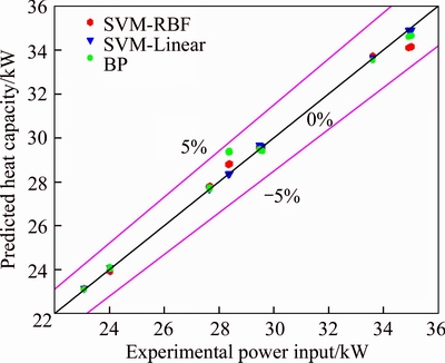 To investigate the potential of SVR in performance prediction for HTHP system, a comparison between SVR and multi-layer BP neural network models was made to evaluate the models’ performance. The parameters presented in Table 5 were selected after many trials in the multi- layer BP neural network model.