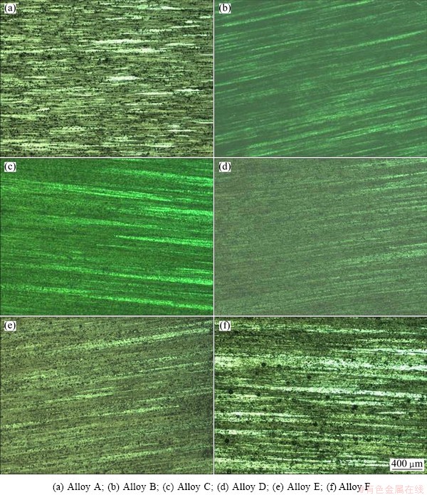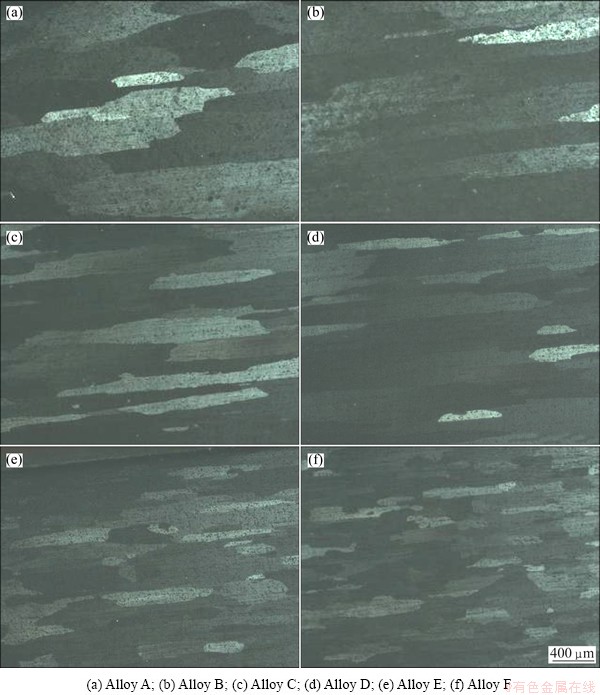 Fig. 5 OM images of aged alloys in longitudinal direction