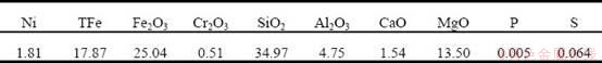 表1 红土镍矿的化学成分