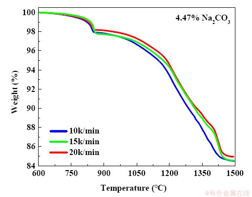 Fig. 2 TG curves of carbothermic reduction of nickel laterite ore with Na2CO3