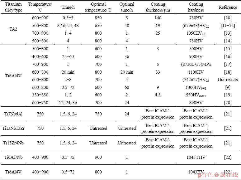 Table 1 Parameters of thermal oxidation process of titanium alloy at home and abroad