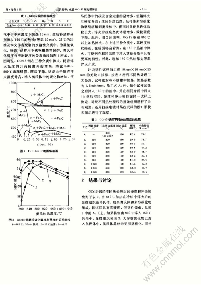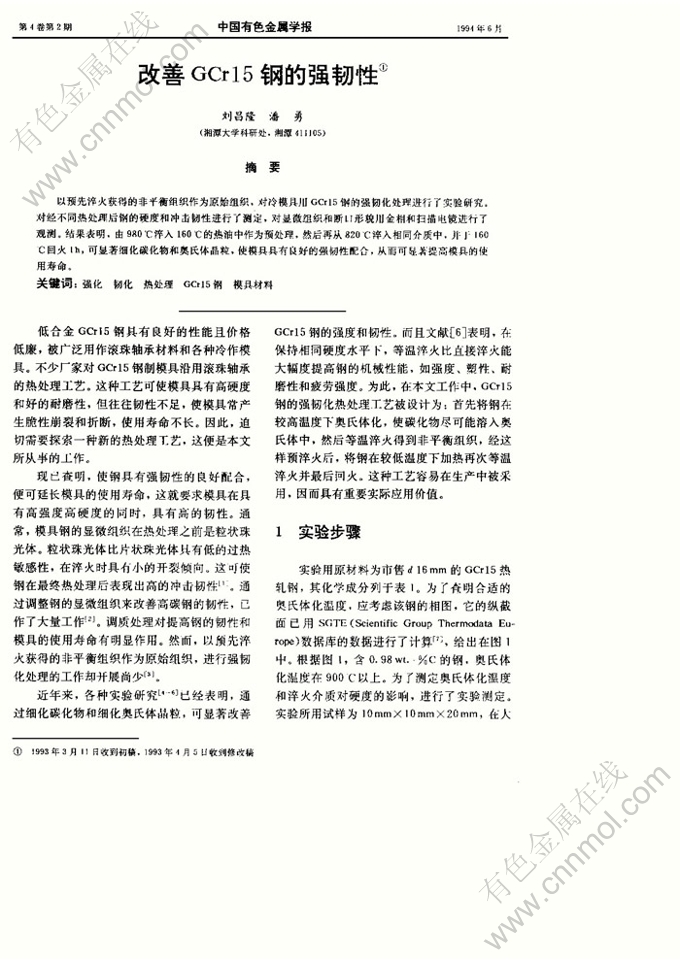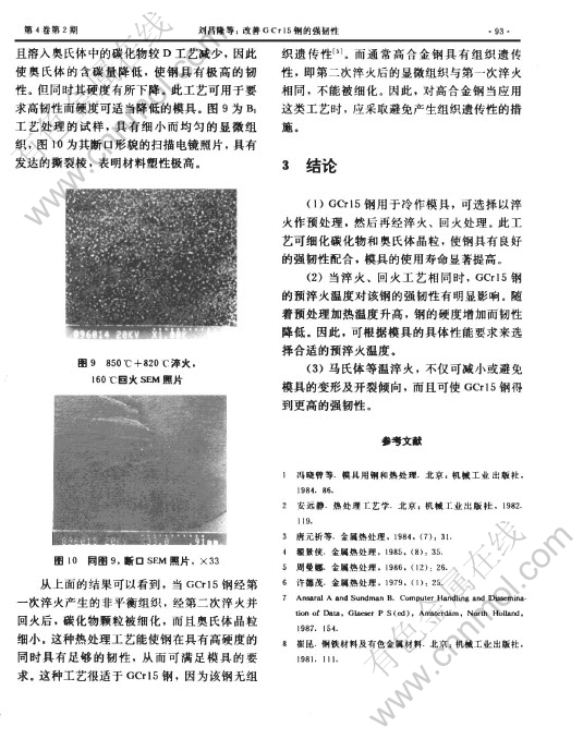 关键词:强化 韧化 热处理 GCr15钢 模具材料