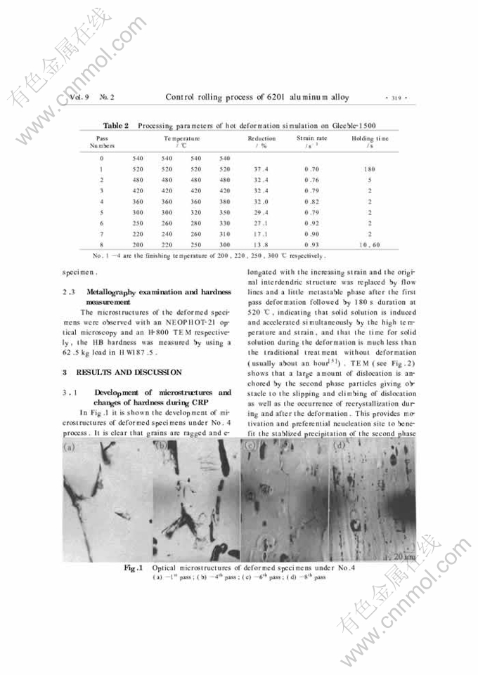 EXPERIMENTAL SIMULATION ON CONTROL ROLLING PROCESS OF6201ALUMINUM ALLOY