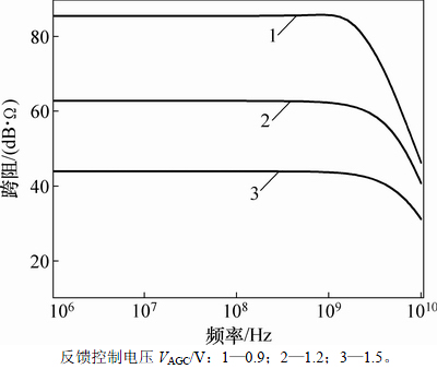 图5 跨阻放大器在不同自动增益控制电压下的频率响应