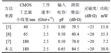 2.5 Gbit/s无电感高灵敏度宽动态范围前置放大器设计