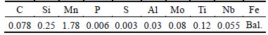 In recent research, the microalloying technology coupled with new generation thermo-mechanical control processing (NG-TMCP) is proved efficiently to achieve the proper balance among strength, toughness, ductility, and formability by means of a suitable combination of chemical composition and thermo-mechanical treatment parameters [4-7]. Microalloying elements Ti, Nb, and V are widely used in high strength low alloying (HSLA) steel, and these elements precipitate as carbides and/or carbonitrides at the austenite grain boundary in cooling process. Precipitation hardening together with grain refinement and dislocation strengthening is used to achieve the desired strength and toughness property [5-8].
