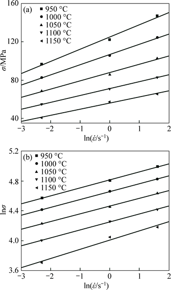 Substituting the values of the flow stress and corresponding strain rate under strain of 0.1 into the Eqs. (5) and (6) gives the relationship between the flow stress and strain rate, as shown in Fig. 3. The value of βand n1 are obtained from the slope of the lines in Fig. 3(a) and Fig. 3(b), respectively. Hence, the value of the constant α at the strain of 0.1 is calculated to be 0.011906 MPa-1.