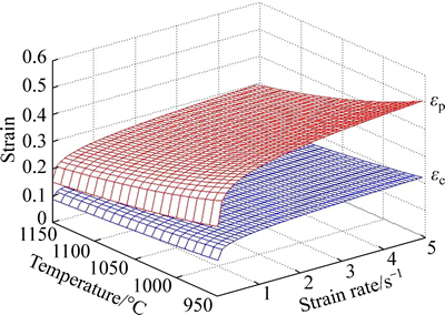 In Fig. 10, the space is divided to three parts by the red surface and blue surface. The red surface (εp) represents the critical condition of full DRX and the blue surface (εc) means critical condition of DRX. When the deformation parameters are above εp, between εp and εc, and below εc, the related recrystallization is full DRX, partial DRX and no DRX, respectively.