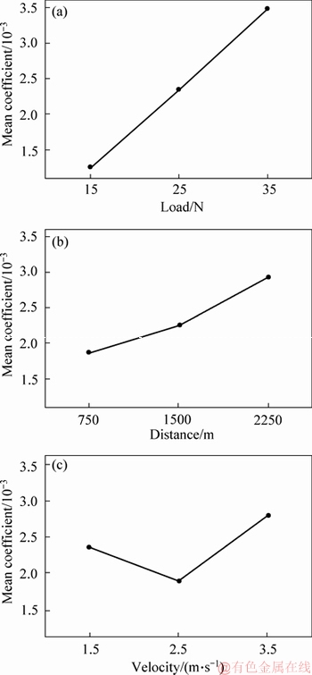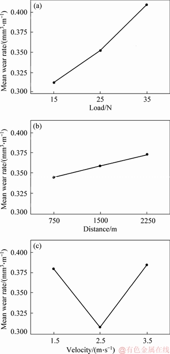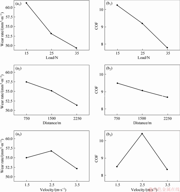 Graphical trends of each influential parameter (applied load, slide distance and slide velocity), are represented in Figures 6 and 7.