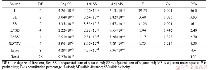 The factors significantly influencing the wear performance and wear coefficient characteristics were statistically analyzed using ANOVA technique and interactive effects are displayed in Tables 4 and 5.