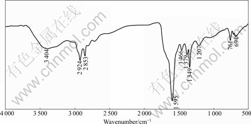 FTIR spectrum of synthetic product is presented in Fig.1. The DEN12 has —CH2 stretching bands at 2 924 cm-1 and 2 853 cm-1. The stretching of C—N is around 1 030 cm-1 to 1 120 cm-1. The peak around 3 400 cm-1