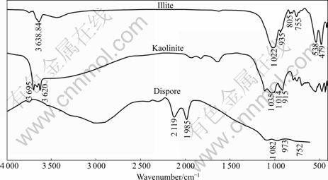 Fig.3 FTIR spectra of diaspore, kaolinite and illite