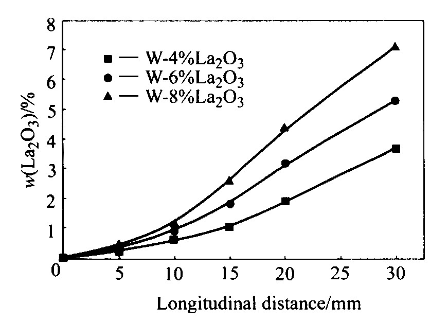 。 但随着La2 O3 含量增大, W-La2 O3 电极的成型性和加工性变得更加困难