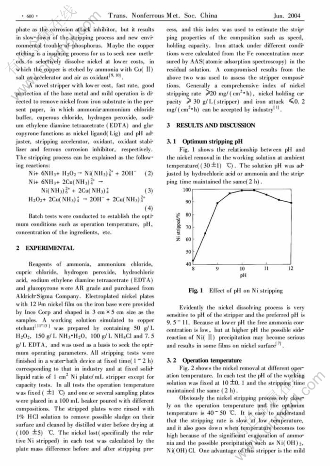 Key words:nickel stripping; non-cyanide composition; environment-friendly technology