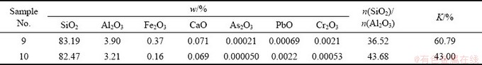 尾矿的资源化利用率以SiO2的利用率(K)表示,按式(1)计算: