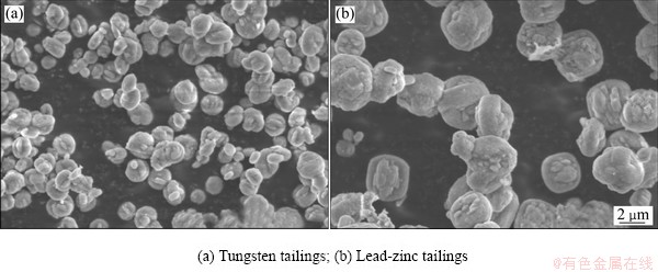 有色金属钨矿和铅锌矿尾矿分别取自于广西壮族自治区贺州市某尾矿库和岑溪市某尾矿库。两种尾矿料经研磨后湿筛过孔径0.074 mm的筛,并于120 ℃空气氛围下干燥12 h,得到干化矿料。