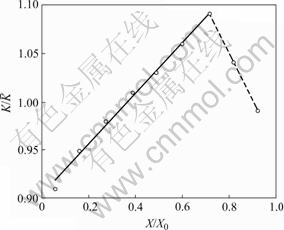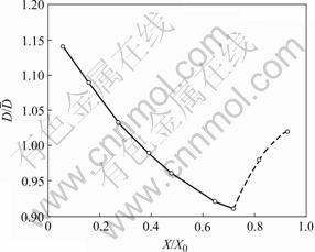 Fig.4 shows the distribution of pellet sizes on the burden surface. In Fig.4 X is the distance away from the wall of the internal vertical air channel; X0 is the distance from wall of the internal vertical air channel to the furnace wall; D is the pellet diameter, and the