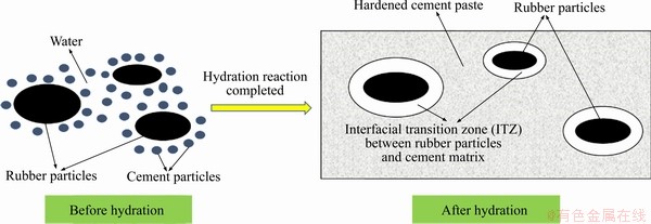 Figure 10 Schematic diagram of interfacial transition zone between rubber particles and cement matrix