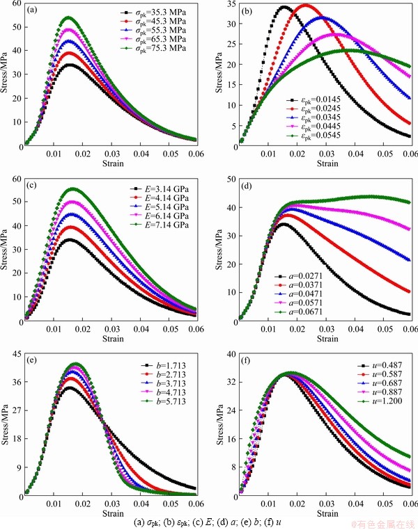 Figure 15 Influence of different parameters on shape of stress-strain curves: