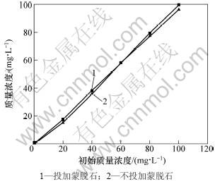 图2 黄药初始质量浓度对平衡质量浓度的影响
