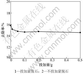 Fig.4 Effect of montmorillonite dose on xanthate removal