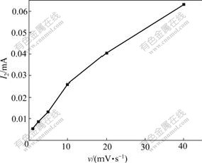 (anode potential of peak 1) increases with the increase of scan rate of υ(anode peak potential shifts to positive direction), which is the same as the characteristic of irreversible reaction of electric active adsorption state. JUSYS and VASKELIS[13] also reported