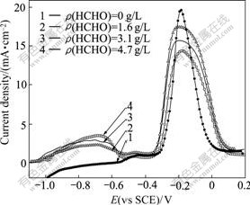 Fig.7 Influence of HCHO concentration on anode polarization curve at scan rate of 10 mV/s