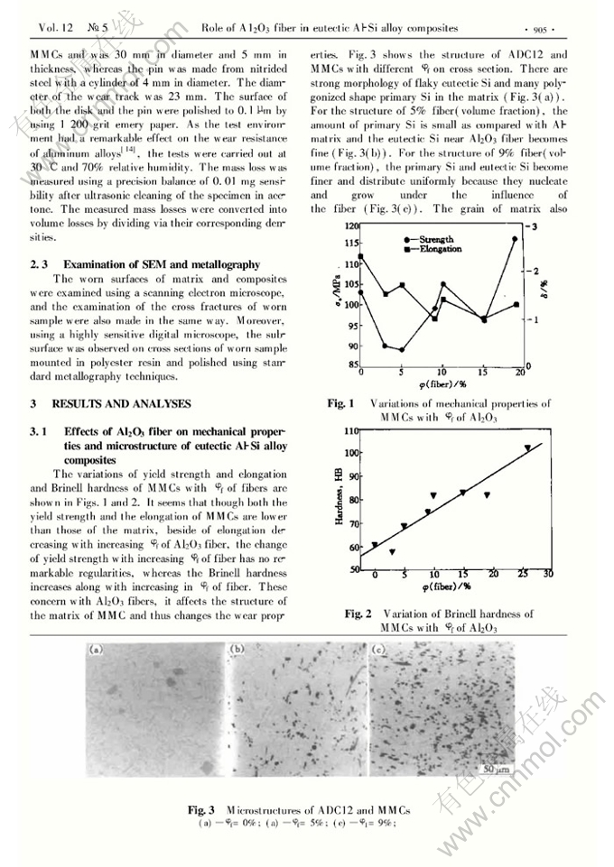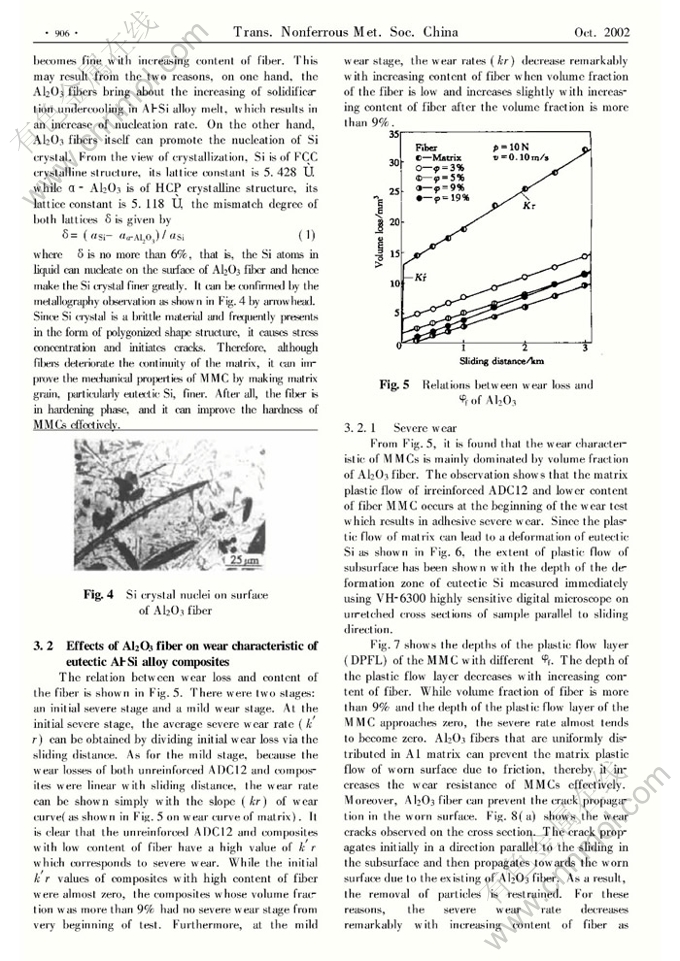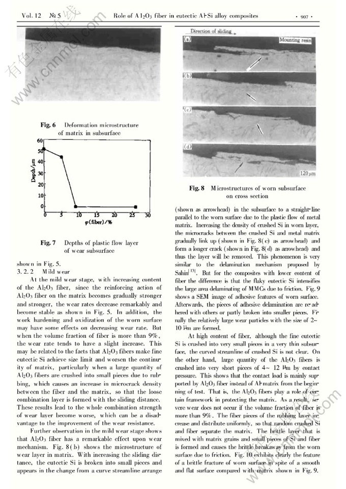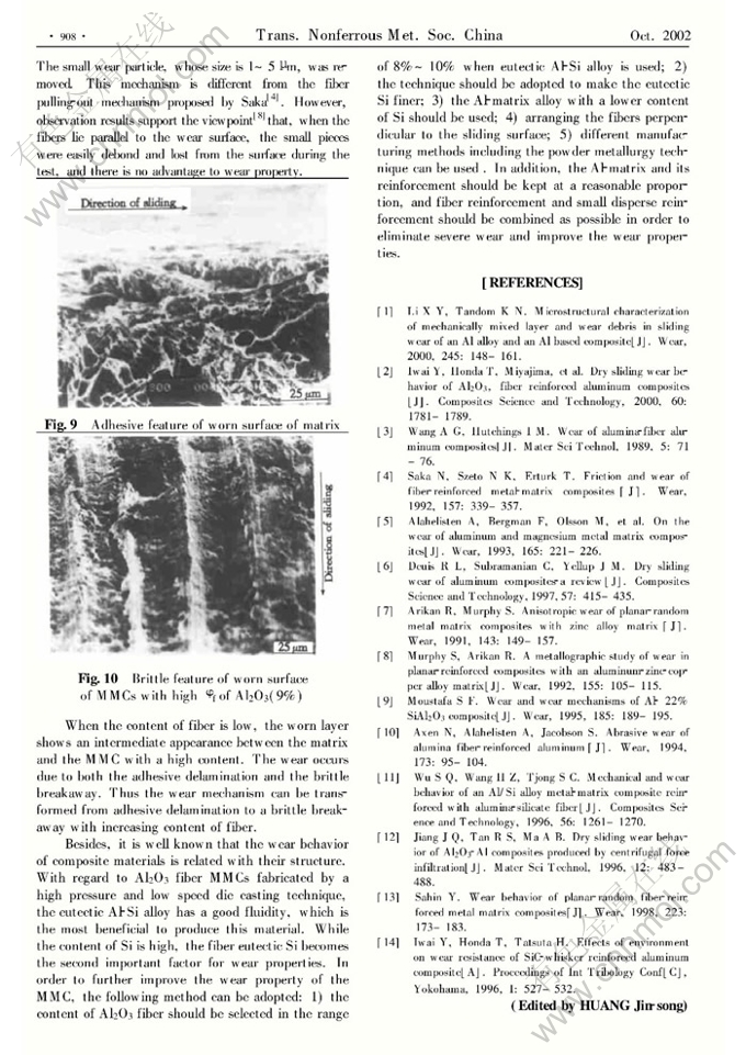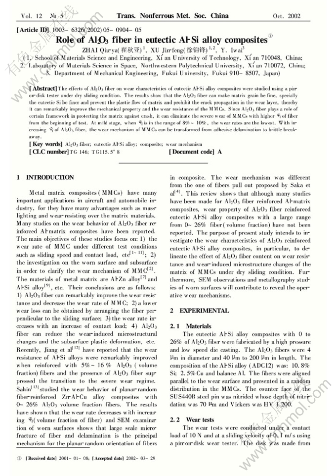Key words:Al2O3 fiber; eutectic Al-Si alloy; composite; wear mechanism