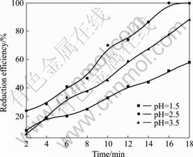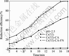 图3 Cr(Ⅵ)-CA-FN复合体系中Cr(Ⅵ)的还原效率随时间变化曲线