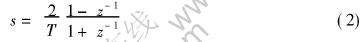 In control systems, continuous transmission function G(s) of controlled objects must be converted into dispersed transmission function G(z), and Eqn.(2) is obtained by Tustin conversion rule:
