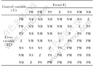 By substituting Eqn.(2) into Eqn.(1), dispersed transmission function G(z) of vacuum counter-pressure casting control systems is obtained, meanwhile, vacuum counter-pressure casting fuzzy control systems in which sampling time is 100ms are designed: