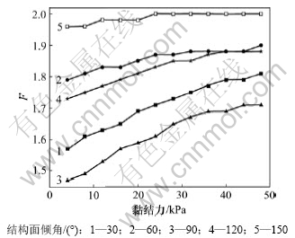 (1) 对于不同结构面,随着结构黏结力的增大,边坡整体安全系数不断增大,并且二者符合线性关系;随着结构面倾角的增大,黏结力发挥的抵抗边坡失稳的作用变得越来越小;当结构面倾角为90°时,边坡安全系数对结构面黏结力的敏感度最强。