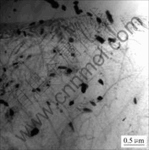 Fig.4 shows the TEM image of extruded MgGdScMn rod. There are a lot of dislocations enwinding fine second phase particles containing Mg, Sc and Mn.