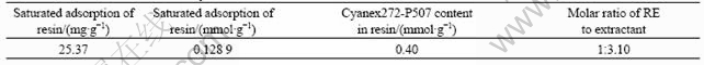 According to Ref.[18], the saturated adsorption of Cyanex272-P507 impregnated resin for heavy rare-earth is 25.37 mg/g, that is, 0.128 9 mmol/g, as the average relative molecular mass of the raw material is 196.81.